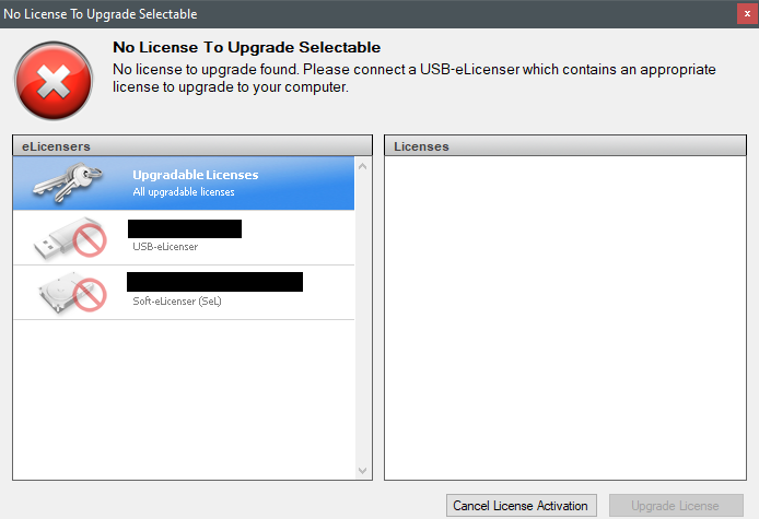 I follow the procedure but I am not able to select the licence to upgrade. The usb elicencer is connected and working because I can run previous versions of Cubase.