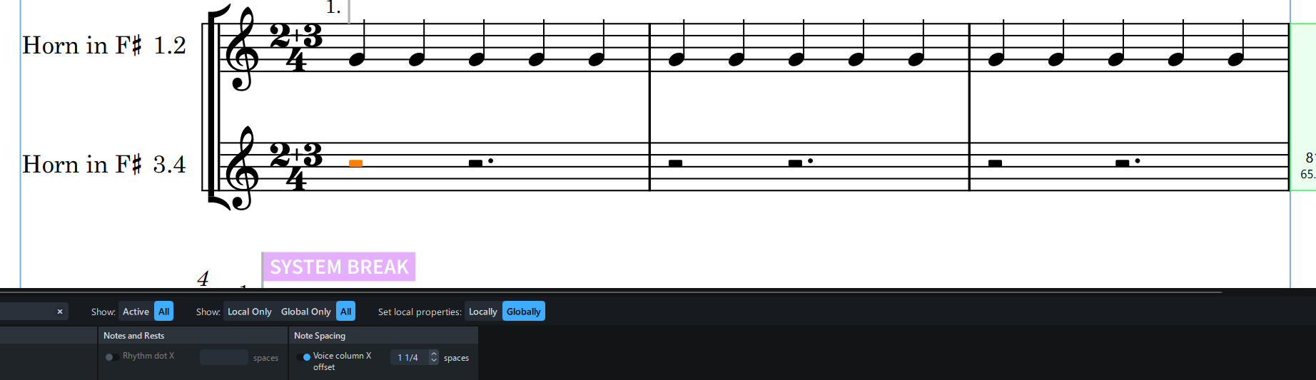 The latest update allowed moving condensed rests (thank you) but there is an issue with the “Voice column X offset” value getting ignored. After sequentially adjusting this value on the condensed rests or switching to galley view (there seem to be multiple triggers and it wasn’t consistent), the position of the rests gets reset and the value becomes ignored. This bug only affects condensed rests.