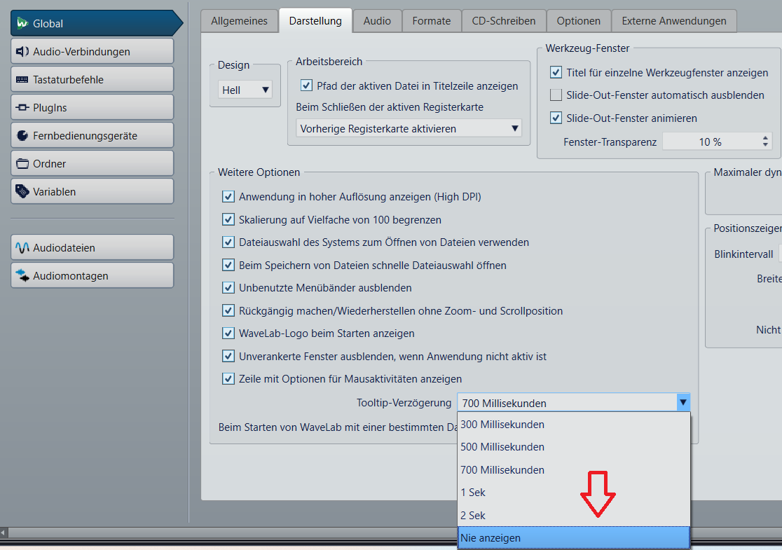 Wie deaktiviert man die Funktions Textblasen , die bei einer Neu Installation von Wavelab automatisch aufpoppen?