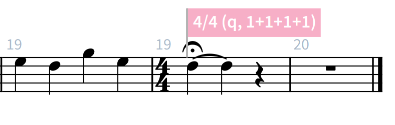 Now I select the half-note in the last bar, type shift-M and 4/4-3, and to my surprise, it changes this: