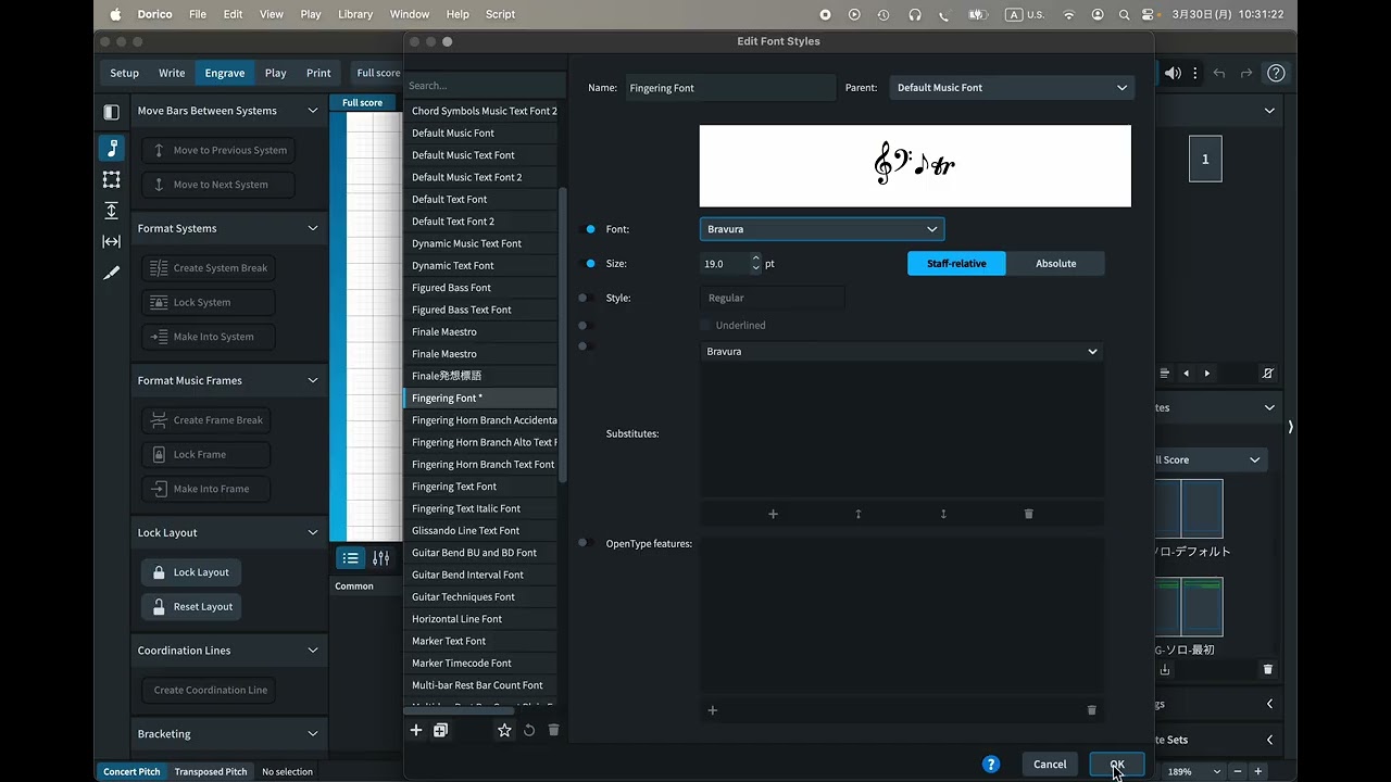 I’m sending a project which uses Bravula as a fingering font, can you check out if you could reproduce the issue? Thank you.