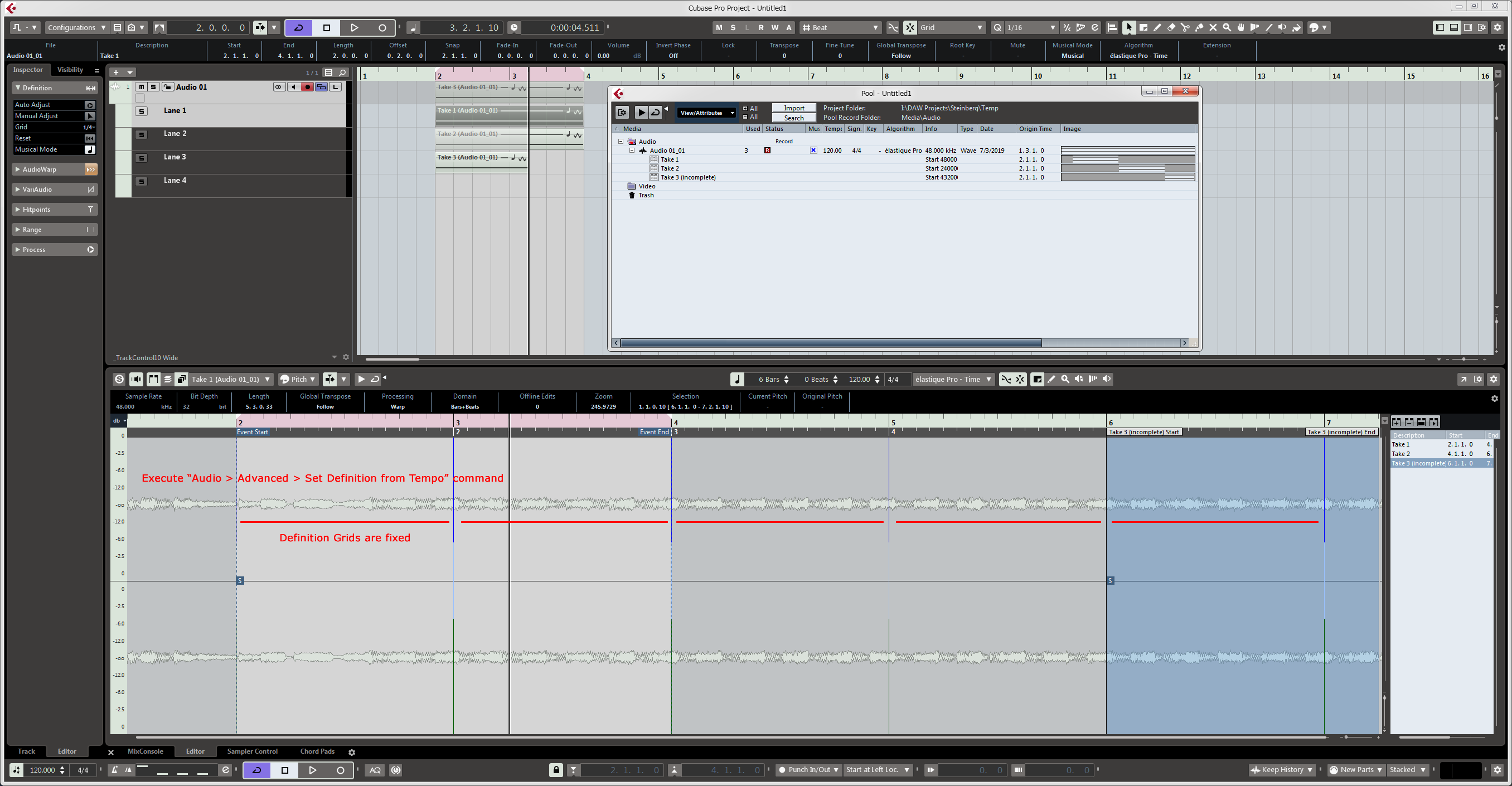 I must have been doing something wrong since forever because I can’t for the life of me figure out why the Cubase Pool can’t use the Project Tempo as the default tempo for newly recorded Audio parts?