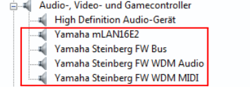 In the device manager there is a single entry (not more than one, which I would have expected!) yamaha firewire bus - with an exclamation point. The error text here points to the Firewire-Device.